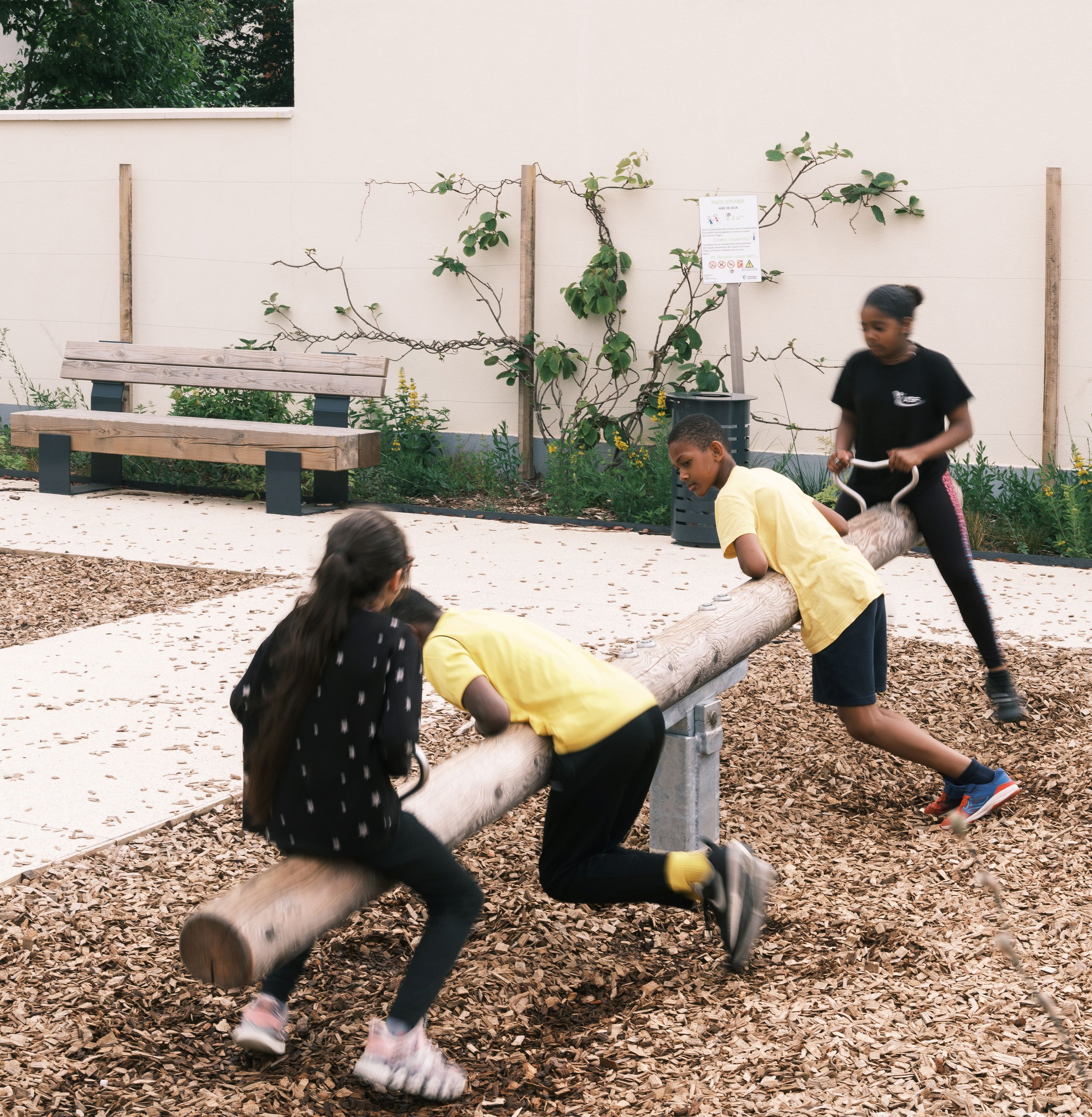 Fontenay-sous-Bois, commune de la banlieue est-parisienne, dispose aujourd’hui de très peu de foncier disponible, mais souhaite améliorer le cadre de vie de ses habitant·e·s. L’opération s’inscrit dans un contexte urbain dense, en pleine mutation, à la périphérie de la ville. L’objectif était de créer un lieu favorisant le « vivre-ensemble » pour le quartier, offrant convivialité et espaces de loisirs, notamment pour les plus jeunes.