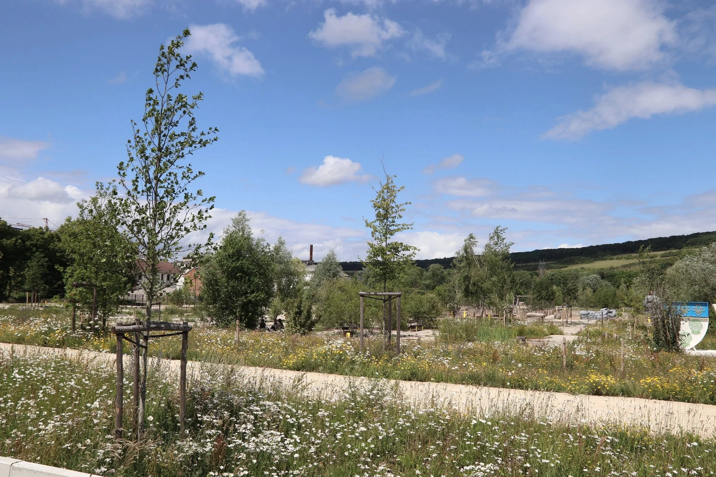 Programme : Parc / Prairie inondable / Dépollution / Ré-emploi / Biodiversité / Aire de jeux / Mobilier urbain