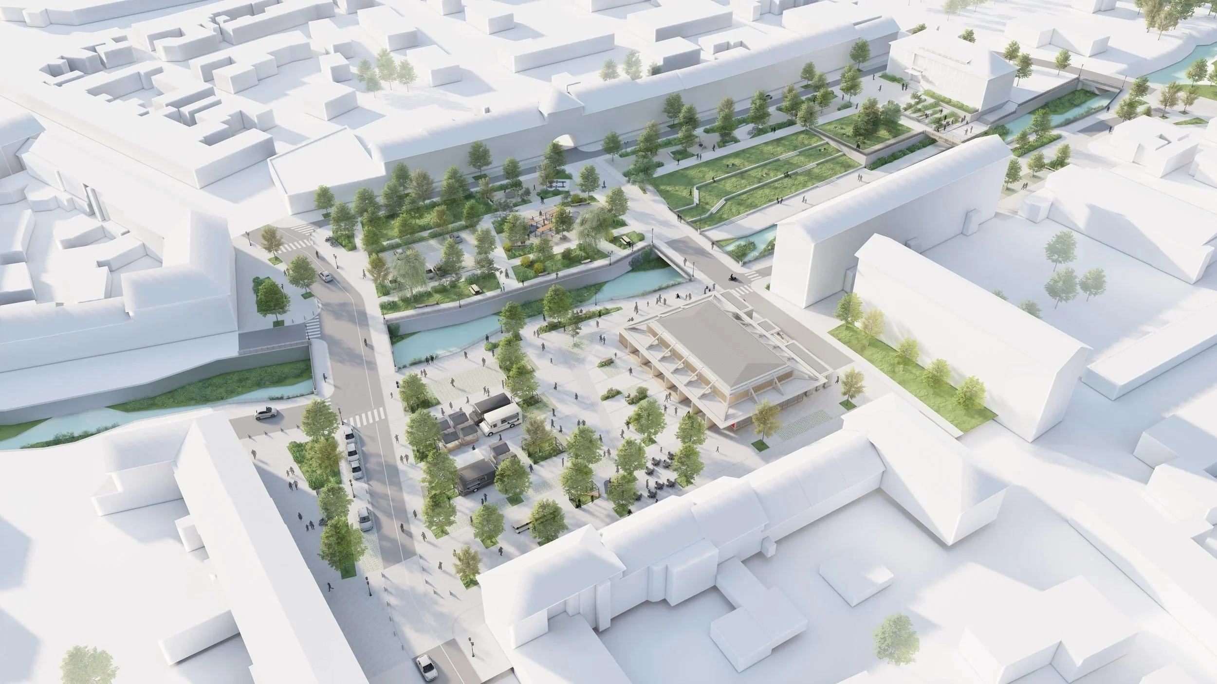 Le projet de la Halle et du cœur de ville doit permettre de redonner une identité à la commune. Elle doit porter une image, un état d’esprit. Cet aménagement doit être le signe du renouveau du centre-ville et offrir aux générations futures un lieu de vie de qualité. Ce nouveau centre-ville et sa place de marché se doivent de proposer une mixité d’usages, une végétation rafraîchissante et un véritable confort quotidien dans les déplacements.