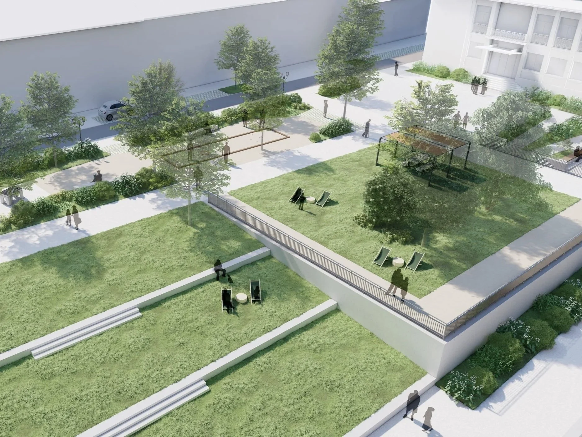 Mêlant de concert travail sur les espaces publics et bâtis, le projet cherche à faire dialoguer passé et présent en s’insérant avec respect tout en affirmant une trace de modernité.