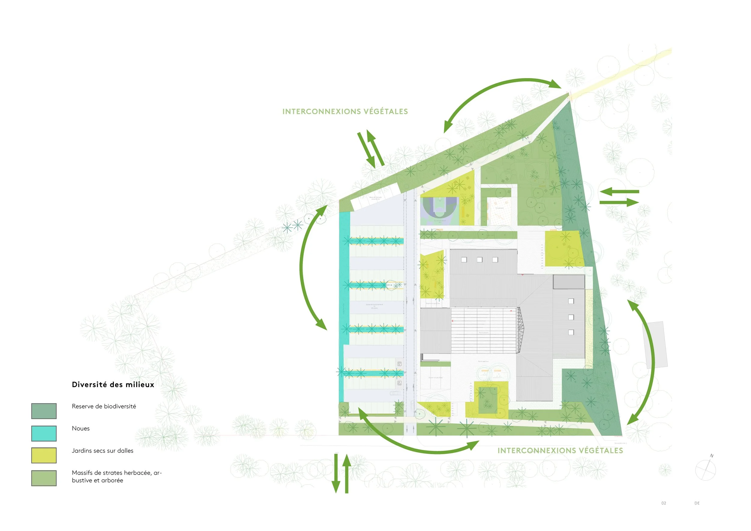 “La palette végétale évolue depuis le parvis sud avec de la végétation ornementale et maîtrisée, vers une végétation plus libre au nord.”