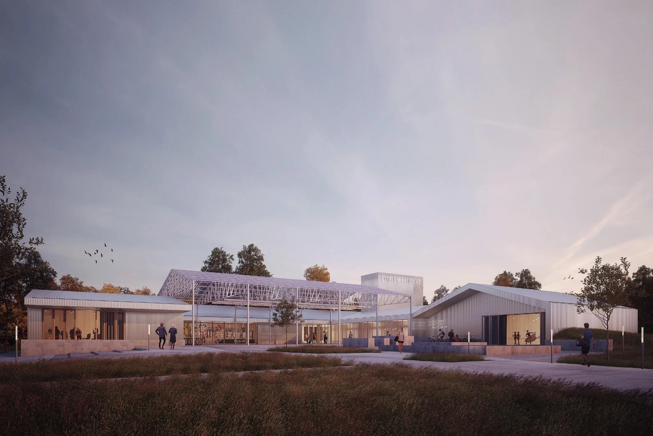 Le dessin et la définition des espaces extérieurs nous ont été confiés avec la volonté de créer des circulations douces permettant l’accès au site, un parvis d’accueil en façade sud du bâtiment, la gestion des stationnements et la création d’un parc tourné vers les paysages agricoles alentours, au nord du site.
