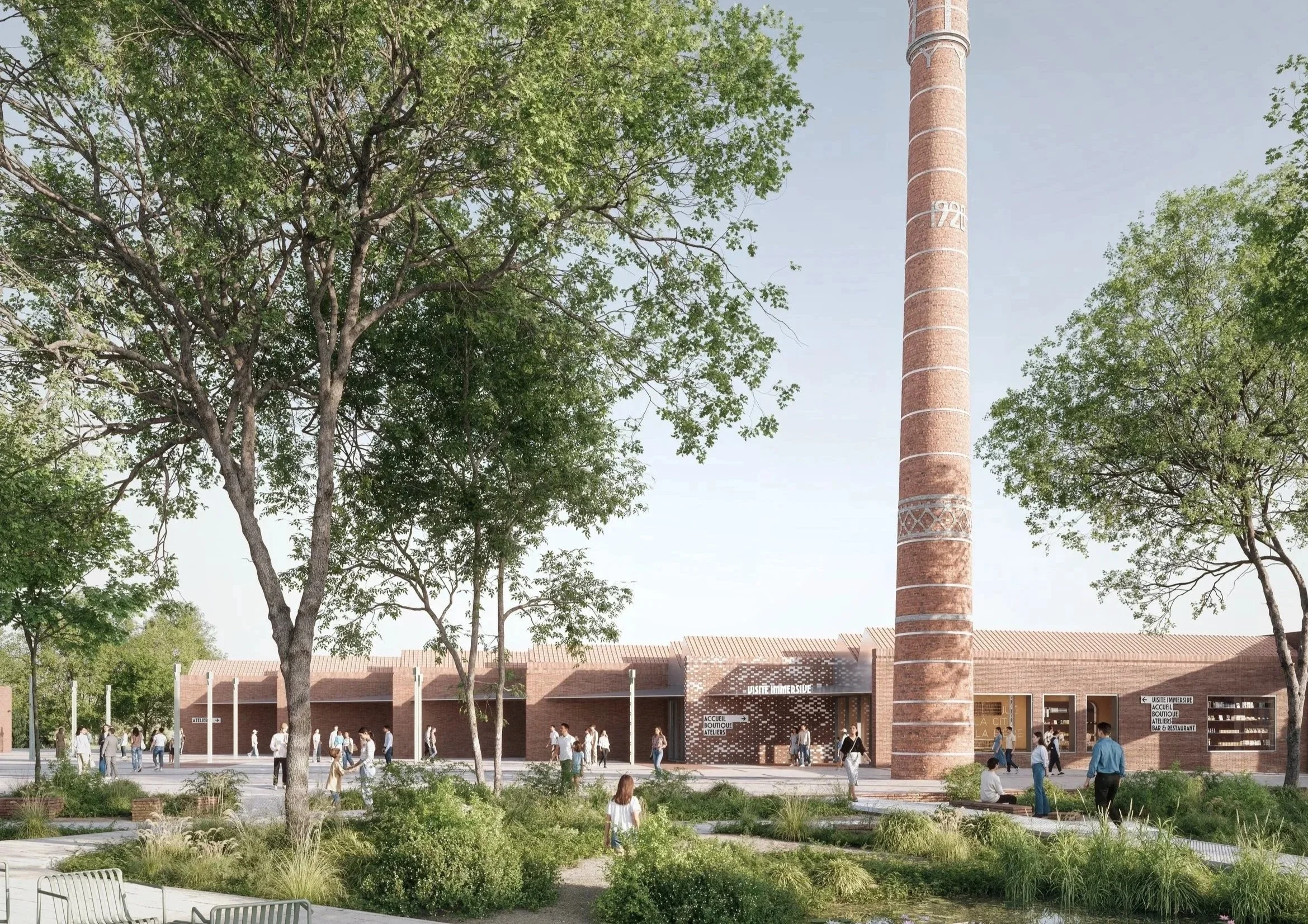 L’architecture s’inscrit dans le respect du patrimoine existant. Les toits en sheds, emblématiques de l’architecture industrielle du Nord, seront conservés, restaurés et réemployés, tout comme la grande cheminée, symbole et mémoire du site. Les démolitions restent limitées et ciblées, afin d’ouvrir l’îlot, de hiérarchiser les éléments remarquables et de recomposer un ensemble clair, lisible et cohérent.